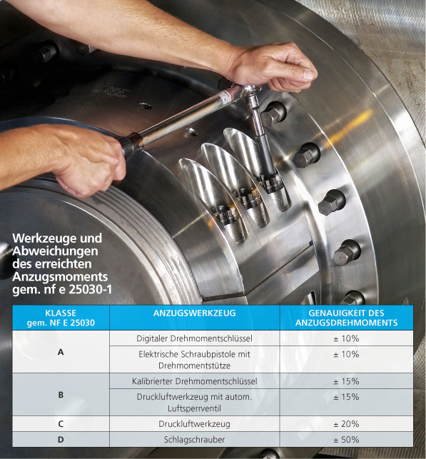 Die Genauigkeit eines Anzugswerkzeugs kann beim Hersteller oder Vertriebshändler erfragt werden. Es gibt jedoch Normen, die die Anzugswerkzeuge und deren Genauigkeit sowie den Werkzeuganwender kategorisieren. Wenn Sie die Anzugsgenauigkeit Ihres Werkzeugs nicht kennen, können Sie die Werte in der Tabelle verwenden.