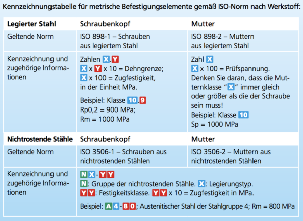 Was bedeuten die Kennzeichnungen auf Muttern und Schrauben?