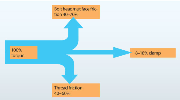- By considering that torsion stress will represent 15% of the total stress. Nevertheless, in respect of thread friction, this usual value can be adjusted: from 10% if the fasteners are lubricated, to 20% in dry conditions and even more when using friction-based locking fasteners.